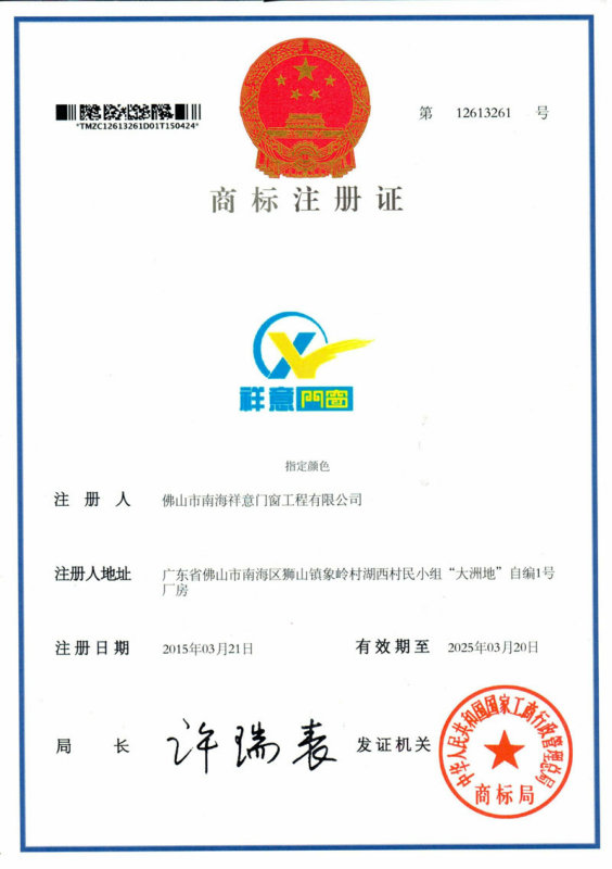廣東祥意門窗工程有限公司是一家專注鋁合金門窗工程及門窗加工、制作的優質企業。公司憑著精湛的技術服務和優良的售后服務,已成功完成多個優質項目。